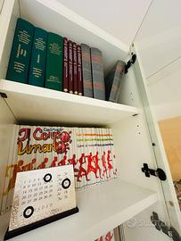 Grande libreria bianca a 3 ante con parte chiusa e parte in vetrinetta