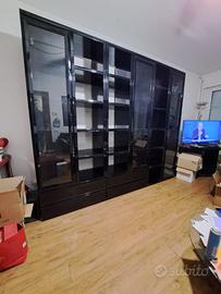 Vendo ampia libreria/vetrina a parete in ottime condizioni, colore nero lucido con ante in vetro e ripiani interni.
