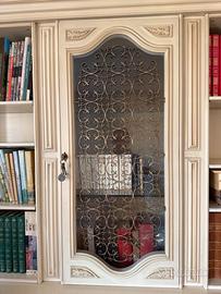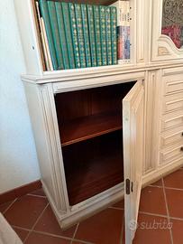 Libreria vintage di grandi dimensioni, colore bianco, composta da due elementi uniti. In vero legno, buona condizione, ideale per soggiorno o studio.