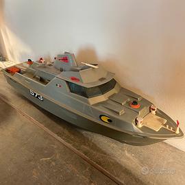 Grande motoscafo giocattolo vintage anni ’70 lungo 67cm prodotto dalla ditta italiana Monteleone. Modello in plastica rigida con diversi dettagli sul ponte (luci, siluri/arredi arancioni, cabina con vetri scuri) e numero 573 sullo scafo. Presente anche adesivo Made in Italy e marchio Monteleone. Venduto come oggetto vintage da collezione. #vintage #giocattolivintage #modellismo #barcagiocattolo #ann70 Dimensioni: •lunghezza: 67 cm •altezza: 22 cm •larghezza: 16 cm Condizioni: buone per l’età, con normali segni del tempo. Mancano alcuni piccoli pezzi(come visibile nelle foto). Ideale per collezionisti di giocattoli vintage o come oggetto decorativo. Motore non testato. Oggetto raro nelle dimensioni grandi.