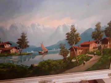 Grande olio su tela di grandi dimensioni con cornice originale piccoli difetti e segni di usura che non ne compromettono la bellezza