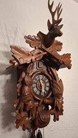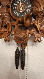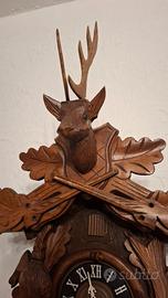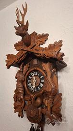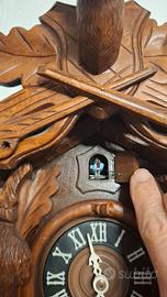 Orologio a cucù della Foresta Nera motivo di caccia, movimento meccanico giornaliero, suona ore e mezze, cm50x30, perfettamente funzionante.