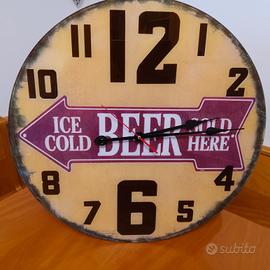 vendo grande orologio da parete decorativo vintage in vetro con la scritta "QUI SI VENDE BIRRA GHIACCIATA "-condizioni perfette diametro 60cm.