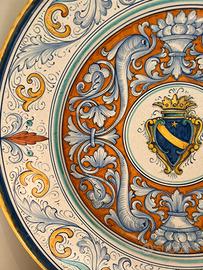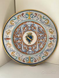 GRANDE PIATTO DECORATIVO IN MAIOLICA FIRMATO SBERNA DERUTA DECORATO A MANO