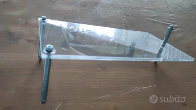 Grande portafoto portalistino espositore portabottiglia regolabile in profondità, composto da due lamine in plexiglass e supporti in acciaio (10 cm). Mis 33x17,5 cm.