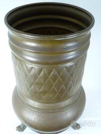 Vecchio portaombrelli cilindrico e bombato alla base.Sbalzato a mano nella parte centrale con motivi geometrici romboidali.