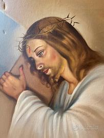 Grande quadro con cornice in legno, raffigurante Gesù Cristo che porta la croce. Autore del dipinto: Roberto Tartaglia. Con certificato di autenticità e firma dell’autore. Ritiro a Santa Maria Capua Vetere