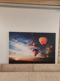 Vendo quadro su tela causa trasferimento. In perfette condizioni. Soggetto suggestivo con mongolfiere e tramonto. Dimensioni importanti: 135 cm di larghezza, 90 cm di altezza. Ideale per ampie pareti. Ottima resa dei colori e telaio robusto.