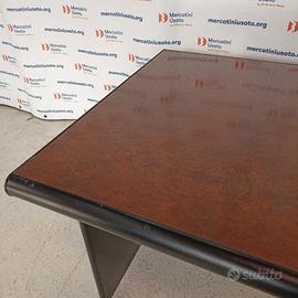 Grande Scrivania con Radica anni 70-80. Struttura in legno impiallacciato con
