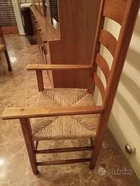 Interamente di fattura artigianale, sia nella struttura in legno massiccio sia nella seduta in paglia intrecciata. Comoda seduta, utile per scrivania o come capotavola. Ritiro in loco, non disponibile a spedizione