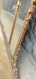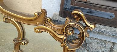 Grande specchiera in buone condizioni generali, sono presenti i segni del tempo, in alcuni punti manca la vernice o è presente qualche difetto.