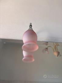 Grande specchio rettangolare con lato alto stondato e lato basso a spigolo 142x102 Applique annesse rosa chiaro e rifiniture argento 10cm In ottime condizioni, presenta soltanto un graffio in basso Ritiro a carico dell’acquirente Prezzo trattabile