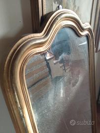 antica grande specchiera o caminiera, con cornice a mecca. una crepa da sistemare. misure 135x78 non spedisco. posso consegnare al casello autostradale di Faenza