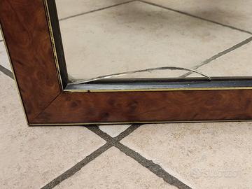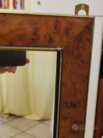 Vendo grande specchio in radica anni '50, dimensioni 126,5x94,5cm. Ganci e rinforzi sul retro. Conservato in buono stato come da foto, normali segni del tempo, piccola crepa in basso a sinistra nel vetro, occultabile facilmente, visibile in foto dettagliata. Articolo vintage. La spedizione è impossibile causa dimensioni, fragilità e quindi costo. NO SCAMBIO. VENDO PER REALIZZO. PAGAMENTO CONTANTI ALLA CONSEGNA.