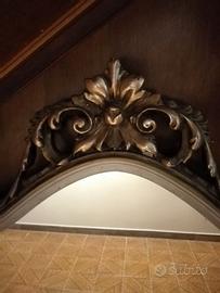 Grande specchio da appoggiare su un comó o con qualche modifica da appendere ad un muro. Ingombro massimo 165x h123. Piccola imperfezione, facilmente ritoccabile, visibile nell ultima foto. Ritiro a mano. Prezzo trattabile.