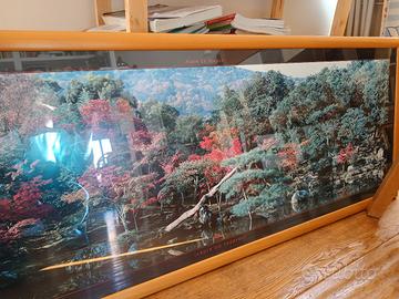 Grande stampa con cornice in legno e vetro del Jardin du Tentyu-ji giardino giapponese molto bella e decorativa. Dimensioni 156X58 perfetta da mettere sopra un divano o letto matrimoniale. Piccolo difetto nella cornice in basso a destra ma penso si possa stuccare (o al limite girare la cornice in modo che risulti in alto e non visibile). Ritiro presso San Giovanni Roma