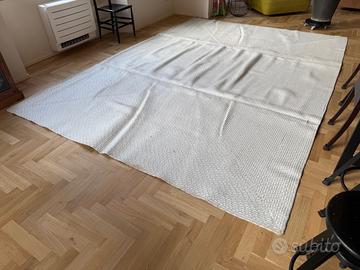 Grande tappeto da interni/esterni in corda nautica. Usato e funzionale, ma necessita di piccole riparazioni (considerate nel prezzo). Lavabile e molto resistente, ideale per grandi spazi. Dimensioni: 393 x 278 cm Colore: bianco / grigio
