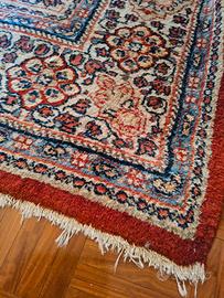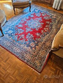 Elegante tappeto persiano originale, annodato a mano in lana su cotone, di manifattura tradizionale Kashan (Iran). Disegno classico con ampio medaglione centrale su fondo rosso e ricca cornice floreale blu notte. Provenienza: Iran (area Kashan) Epoca: circa 1970-1980 Tecnica: annodato a mano Materiali: lana su ordito di cotone Misure: 265 × 190 cm Stato: buono, normali segni d’uso, frange integre Tappeto autentico, non produzione moderna né industriale. Oggi tappeti di questa qualità e dimensione non vengono più realizzati a questi costi. Ottimo come investimento d’arredo e per ambienti eleganti. Per chi preferisce, ANCHE RITIRO A MANO IN TORINO.