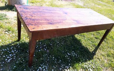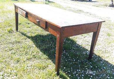 GRANDE TAVOLA CON 3 SEDIE IN LEGNO PAGLIA