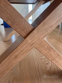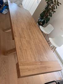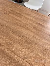 Tavolo allungabile in legno impiallacciato color rovere effetto naturale molto realistico anche al tatto. Larghezza: 90 cm. Lunghezza senza prolunghe: 160 cm Lunghezza con entrambe le prolunghe aperte: 255,50 cm Altezza: 75 cm