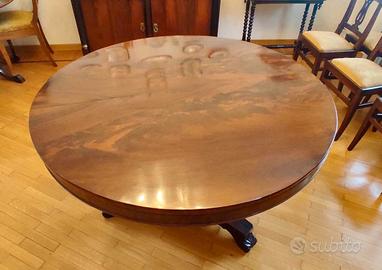 Grande tavolo stile Impero allungabile 4-8 posti ottime condizioni, perfetto per una sala da pranzo di rappresentanza, dotato di estensione a forma ovale per ospitare più commensali.
