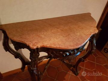 Tavolo-mensola stile Umbertino con piano in marmo rosa - dim. 120x55 H95 - date le dimensioni, la forma e le caratteristiche particolari del mobile che ne rendono complessa la spedizione, lo stesso può essere ritirato direttamente in loco