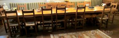 Tavolo realizzato a mano, in legno con essenza di pregio, usato solo alcune volte l'anno in seconda casa, pari al nuovo, come da foto, completo di 14 sedie impagliate di ottima fattura. lunghezza