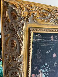Grande tela artistica copia della primavera di botticelli. Cornice in kegno intagliato e dorato. Misure : 160 x 117 di altezza