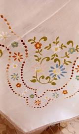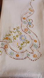 splendida tovaglia in delicato cotone ricca di ricami con colori delicati, in ottimo stato, misure altezza 240 cm ,larghezza 170 cm