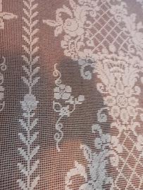 tovaglia in lavorata a filet a Mano in perfetto stato color avorio chiaro misure larghezza 230 cm, altezza 230 cm