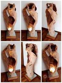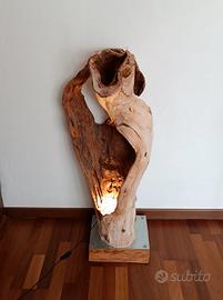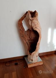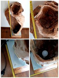 Pezzo unico artigianale e introvabile realizzato interamente a mano Grande piantana - lampada da terra ricavata da grosso tronco di legno cavo. Base in legno con piastra in acciaio. Design unico e moderno. Altezza massima da terra 100 cm Base circa 30x30 Visione e ritiro a Mira (VE) Italia Possibilità di spedizione personalizzata da valutare
