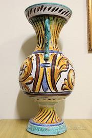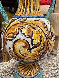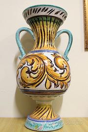GRANDE ANFORA DECORATIVA DIPINTA E LAVORATA A MANO CON DECORAZIONI TIPO 'CALTAGIRONE' MISURE: ALTEZZA 60 CM DIAMETRO MAX 25 CM PESO 12 KG