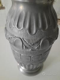 Grande Vaso in peltro spazzolato ( come da foto inserite ) con particolari decori in rilievo # Integro senza Graffi, Bollatuure o Segni # H. 32 cm. - Larghezza max di Ingombro 16 cm.