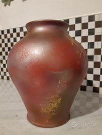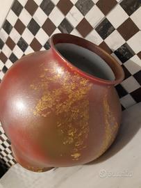 grande vaso in porcellana dipinto a mano Color rosa sfumato con applicazioni oro.