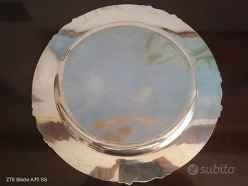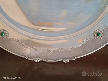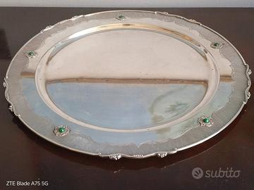 Un magnifico vassoio di belle dimensioni, in argento 800 del prestigioso marchio F.lli Calderoni, realizzato con grande maestria in argento, pietre dure a sfera e finitura con diverse lucidature realizzate a mano. Diametro: 38 cm Peso: circa 900 grammi Il vassoio, conservato molto bene, con minimi segni del tempo, può essere lucidato a piacere. L'oggetto non essendo venduto a peso va acquistato per le sue caratteristiche artigianali/artistiche/storiche. Eventuali contestazioni dovute al peso diverso, ad esempio per bilancia con diversa taratura, non saranno prese in considerazione. Non sarà accettata la restituzione, la quale prevede perdite per il venditore. Si prega di accertarsi precedentemente dell'interesse per il bene. Grazie