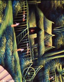 Grande ventaglio in velluto dipinto a mano