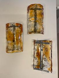 Sono 3 magnifiche lampade la muro in Vetro di Murano molto importanti e scenografiche, probabilmente Vistosi, Poliarte o Mazzega.