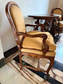 Grandi sedie in legno con stoffa gialla