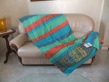 Granfoulard Bassetti disegno DUALA 180X270 puro cotone da utilizzare come copridivano copriletto tenda oppure in qualsiasi modo si voglia. Inoltre questo modello è provvisto di un foulard che lo avvolge, come si vede dalle foto, utile e bellissimo da usare come tovaglietta da the.