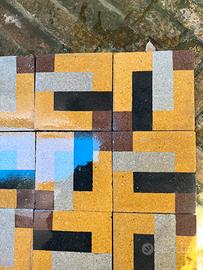 Piastrelle in graniglia di marmi, con disegno geometrico tipico del ventennio (decò), risalenti agli inizi degli anni '30 del secolo scorso, dimensioni 20x20 cm circa, composte da N° 78 pezzi, per un totale di 3,20 mq.