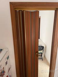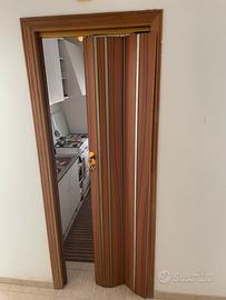 Regaliamo porta a soffietto con manjglia pomello e serratura, in legno marrone con inserti in ottone dorato