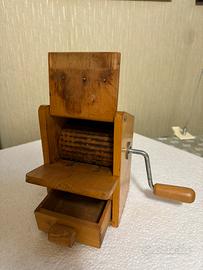 Come quella esposta al museo del parmigiano reggiano in legno di faggio funzionante con cassetto di raccolta vintage ‘la grattugia della nonna ‘.