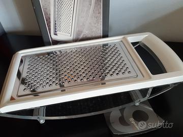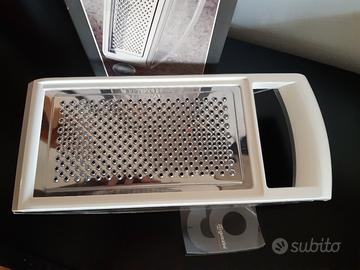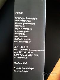 Bellissima e introvabile grattugia formaggio Guzzini con contenitore in PMMA Plexiglass. NUOVA. Mai usata. Ancora nella scatola originale. Dimensioni 27.5 x 12 x 6 h. Il PMMA è un polimero termoplastico estremamente trasparente, ottenuto per polimerizzazione del metilmetacrilato monomero. In ragione della trasparenza, della sua estetica e della resistenza ai graffi, il PMMA può essere considerato l'alternativa leggera al vetro. Per questo, talvolta è denominato vetro acrilico. È comunemente noto anche con il nome commerciale di Plexiglas. Dal punto di vista commerciale è il polimero più importante del gruppo degli acrilici