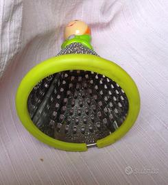 Piccola grattugia alta 14 cm - diametro 8 cm 2 lati con fori diversi . Molto simpatica sia da usare o come soprammobile cucina. Nuova. mai usata. Perfetta. Pulita.