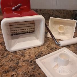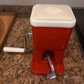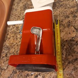Grattugia anni 80, in plastica rossa con lame e manovella in acciaio,con ventosa (che attacca poco!) marca Lillo, made in Italy, ben tenuta.