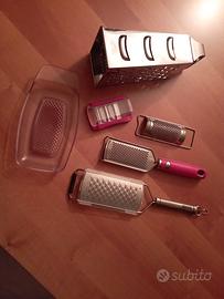 - grattugia/affettatrice 4 lati alt. 23 cm (2 lati affettano con fori diversi, 2 lati grattugiano con fori diversi)