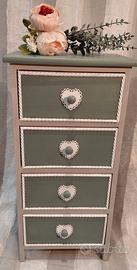Realizzata in legno con una splendida venatura a vista che esalta la bellezza della materia prima, è dotata di 4 cassetti con pomelli coordinati, ideali per suddividere piccoli oggetti senza rinunciare all'estetica.
