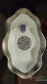 Graziosa ciotola a forma ovale in ottima porcellana della collezione L'Etoile, realizzata in pregiata porcellana di Limoges con bordo pantografato in oro bianco 22 K