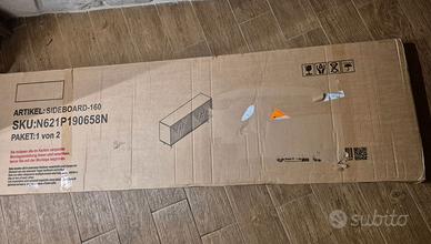 Questa credenza in legno nero e naturale e l'aggiunta perfetta per qualsiasi casa moderna,offrendo un design semplice ed elegante e una funzionalita versatile. Lunga 160 cm, larga 40 cm e alta 75 cm, la credenza a quattro ante offre un ampio spazio di archiviazione