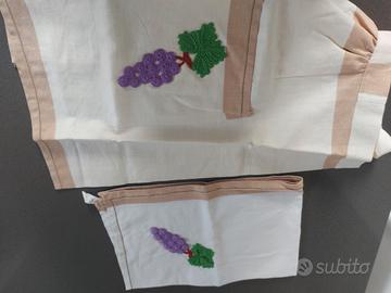 Grembiale ampio mai usato e asciugapiatti in lino con decorazione all uncinetto fatto a mano